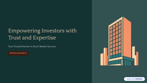 Invesia Research is committed to empowering investors with the right knowledge, strategies, and confidence to succeed in the stock market. This professional brochure highlights our client-first approach, where expert research meets innovative thinking to deliver reliable and actionable insights. With a strong focus on clarity and consistency, we guide investors through every stage of their financial journey—helping them make informed decisions and achieve sustainable growth. From real-time market analysis to proven investment strategies, our goal is to simplify the complexities of the stock market. At Invesia Research, we don’t just provide recommendations—we build trust, offer guidance, and stand as your reliable partner in navigating market opportunities with confidence.