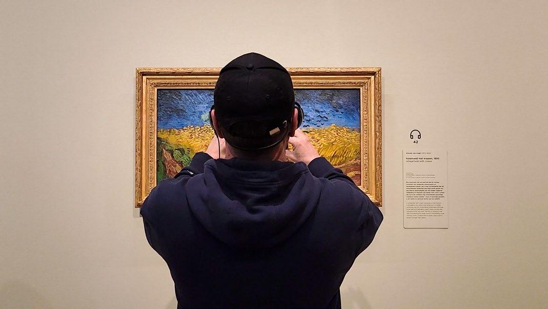 framing the audience in front of the Berlin wall memorial, Van Gogh museum and Stedelijk museum in Amsterdam