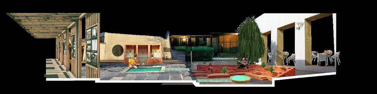 A series of pictures were chosen based on their colors, light and shadows. Among these pictures were some consisting of Iranian architectural elements such as courtyards, passageways (Dalaan), balconies (Ivan) and so on. Greenery, water and material were also present in them. Then these pictures were put together in a form of collages