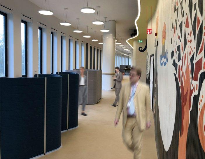 Based on collage no. 1, this corridor is a semiopen and transparent space in between the courtyard and interior spaces, indicating a hierarchy in order to enter the office building from the open space of the courtyard. It also provides corners where the user has control over the way they spend their time.