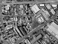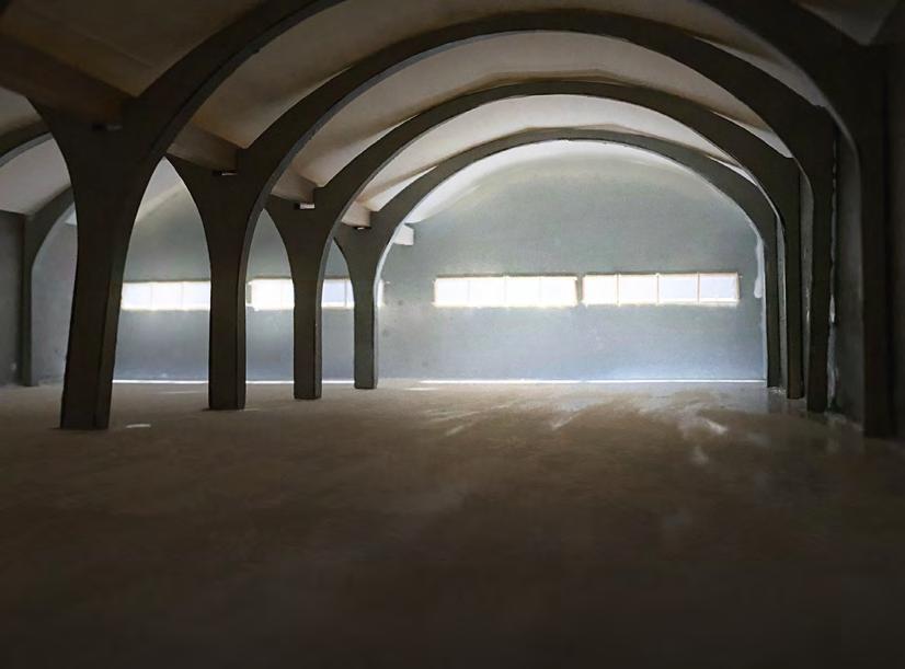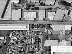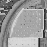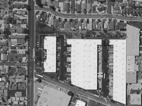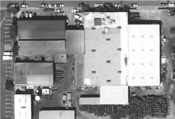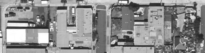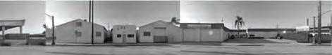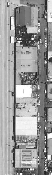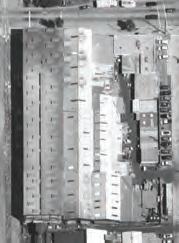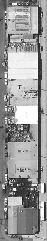 There is very minimal information available regarding the former functions of this warehouse, and the only notable business marked on the map is “Rush My Passport,” a passport courier service that once operated in the vicinity. The warehouse comprises 30 individual units of industrial space, all of which are zoned for heavy manufacturing purposes, indicating the building’s original intention for highcapacity industrial use. The structure is characterized by light blue exterior walls, giving it a distinct, recognizable appearance, while the roofs are designed in a semi-circular shape, painted in white to complement the overall aesthetic. The warehouse is also equipped with gray metal rolling doors, which provide functional access to the industrial units. Despite its large scale and manufacturing focus, the building has minimal natural light, with few windows or openings to allow sunlight inside, aligning with its utilitarian design.