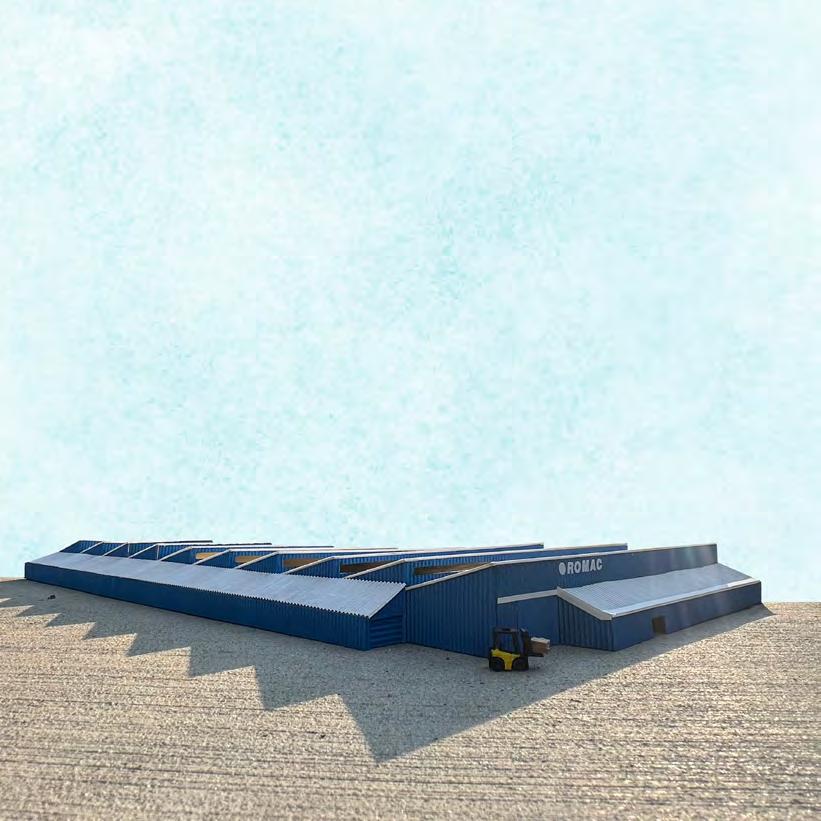The Romac Incorporation was founded in 1969 at Bellevue, Washington, and has since been a prominent player in the innovation of industrial parts. The company’s warehouse, located in the City of Commerce, was originally used for storing electronics. The building features a distinctive saturated blue exterior made of corrugated metal, which effectively reflects the roofs of the neighboring structures. Although the building does not include roof skylights, it is designed with high windows positioned to introduce natural light into the interior spaces. This architectural choice, combined with the elevation of the side windows, results in the building standing taller than the surrounding edifices.