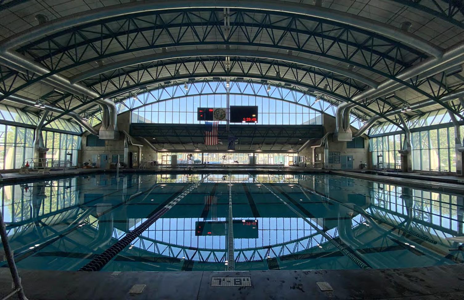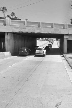 Project “Water Under the Bridge”, Commerce, CA. In creating this composition, we were struck by the reflection of the cars as they drove under the freeway. That reflection and movement made it look like moving water under the bridge – and with the city’s incredible aquatics center, we decided to create the effect of being immersed in the water and honoring the great aquatic sports of water polo and diving.