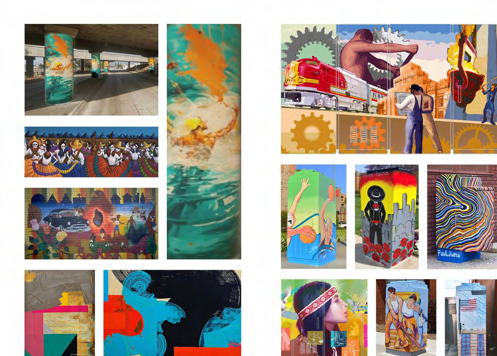 Paul Juno is recognized for his skills in muralism and street art. His background often informs his artistic style, which combines elements of realism and abstraction to convey powerful messages. Juno’s murals are characterized by vibrant colors, intricate details, and dynamic composition. He often employs a blend of techniques that enhance the visual narrative and emotional impact of his work. Paul Juno’s murals in Commerce are a testament to the power of art in transforming spaces and connecting communities.