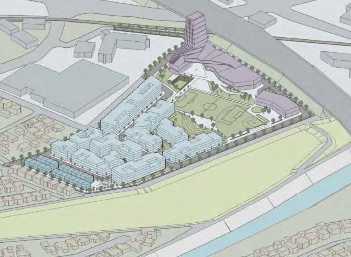Area 3 - up to five new fast food restaurants each with a drive-thru lane, a sit-down restaurant, and a warehouse/industrial building.