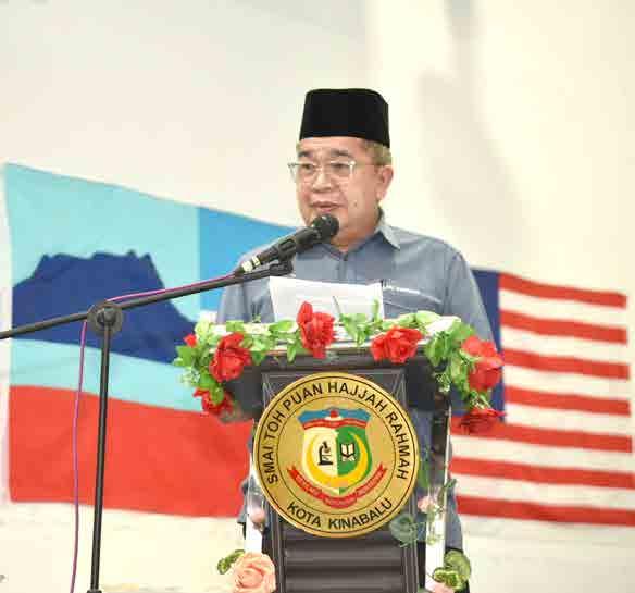 Datuk Seri Panglima Haji Hajiji berucap semasa Majlis Penyampaian Bantuan Pendidikan Negeri Sabah.