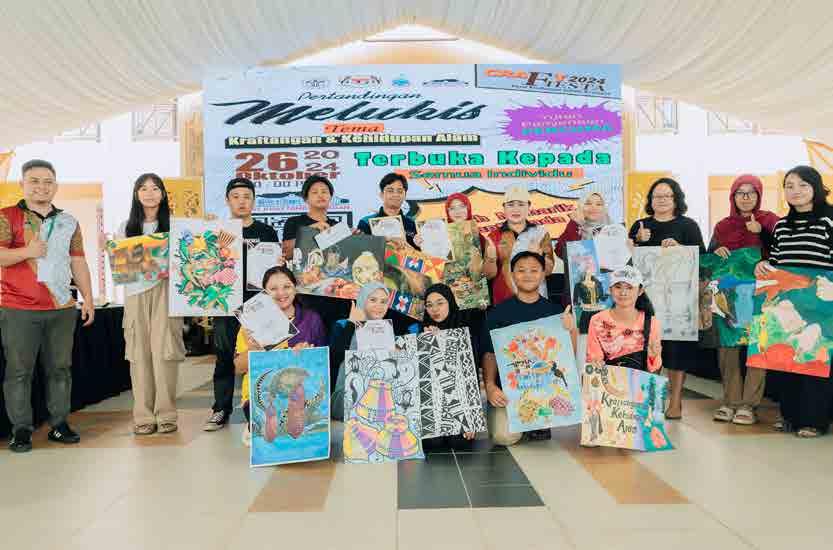 Puan Nur Hasya Irsalina binti Jebin (berdiri, enam dari kanan) menjuarai Pertandingan Melukis bertemakan “Kraf tangan dan Kehidupan Alam.”