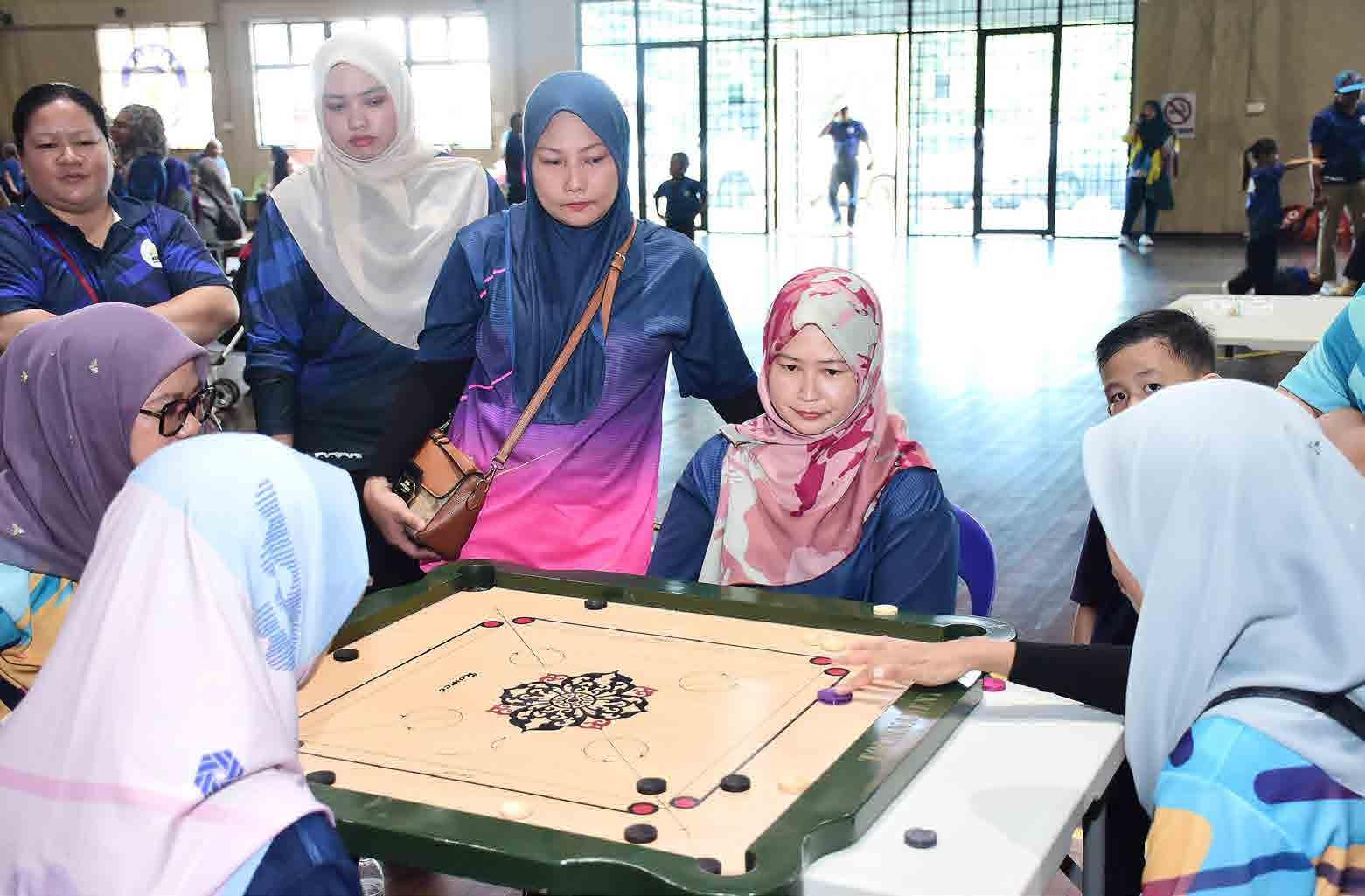 Sukan rakyat menyumpit dan melastik turut menarik perhatian dan minat para pengunjung.