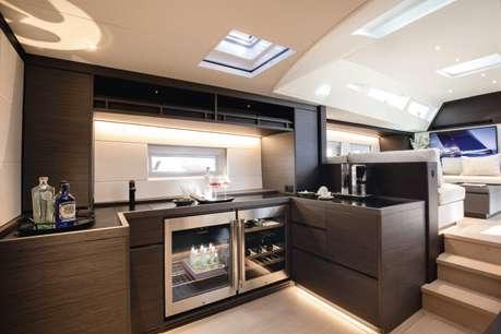 ή γύρω από το τραπέζι της τραπεζαρίας. Αμέσως μπροστά από το σαλόνι βρίσκεται ένα πλήρως εξοπλισμένο προσαρμοσμένο μπαρ που χωρίζει το κύριο σαλόνι από τον ιδιωτικό χώρο του ιδιοκτήτη.