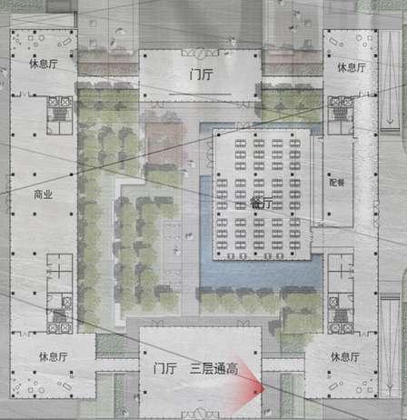 The façade design and spatial layout of the project aim to seamlessly blend with the surrounding historical context while introducing modern elements. The use of grey bricks as the primary material, enhanced by strategically placed vibrant accents, creates a harmonious balance between tradition and innovation The design incorporates two sunken courtyards, integrating classic features with contemporary simplicity The overall aesthetic emphasizes clean lines and an open, inviting atmosphere, merging functionality with visual appeal The spatial organization follows a "3+1" layout, optimizing space efficiency while fostering a dynamic and engaging environment for users