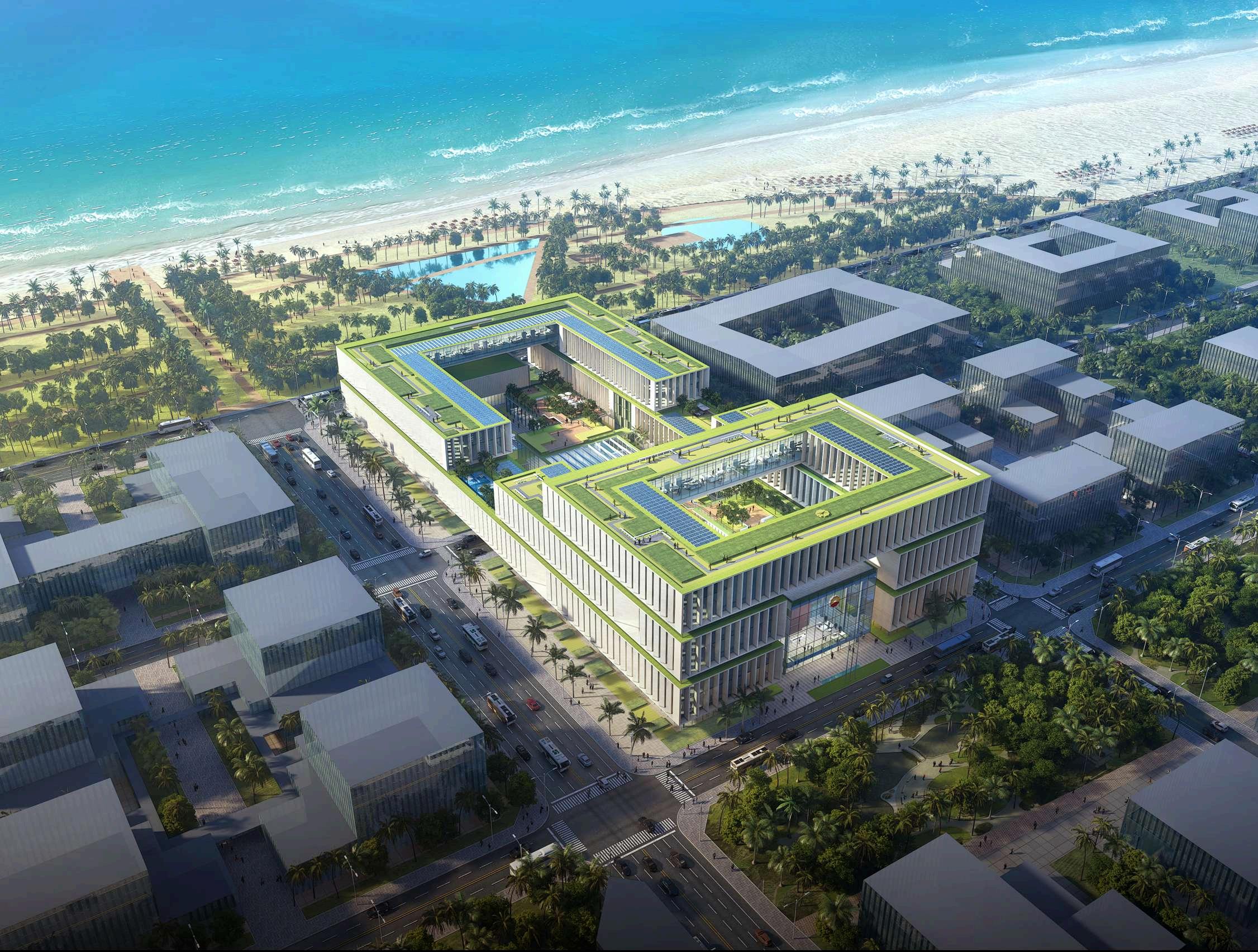 The CNPC Hainan Headquarters, located in the Jiangdong New Area of Haikou City, aligns with China’s Hainan Free Trade Port strategy and supports CNPC's regional business growth The design merges modern office spaces with advanced sustainability features, creating a landmark that embodies CNPC’s identity as a leading state-owned enterprise while emphasizing environmental responsibility