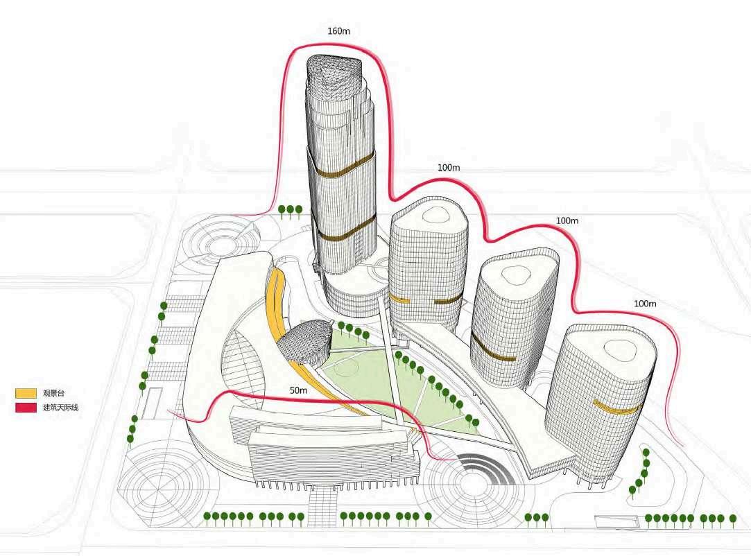 Drawing inspiration from the Taiji philosophy, the design balances "Yin" and "Yang" with office towers along the waterfront maximizing sea views, while commercial spaces create a dynamic urban hub A central green plaza serves as a vibrant gathering space, enhancing community interaction