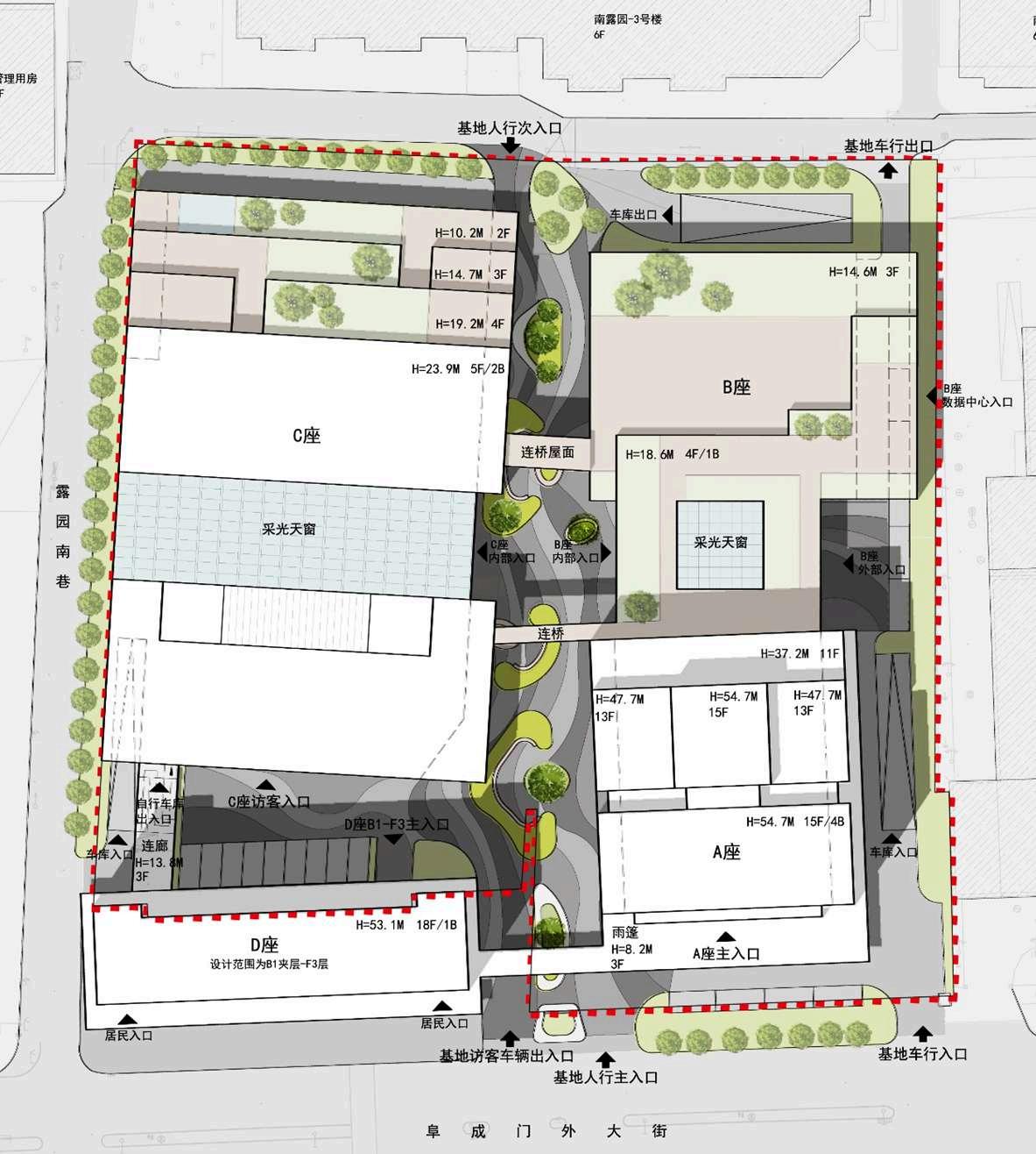The Tianyi Headquarters Urban Renewal Project transforms an abandoned commercial area into a modern office complex in the heart of the city The goal is to create a business district that not only offers efficient office spaces but also enhances the urban environment and stimulates economic growth through thoughtfully designed public spaces.