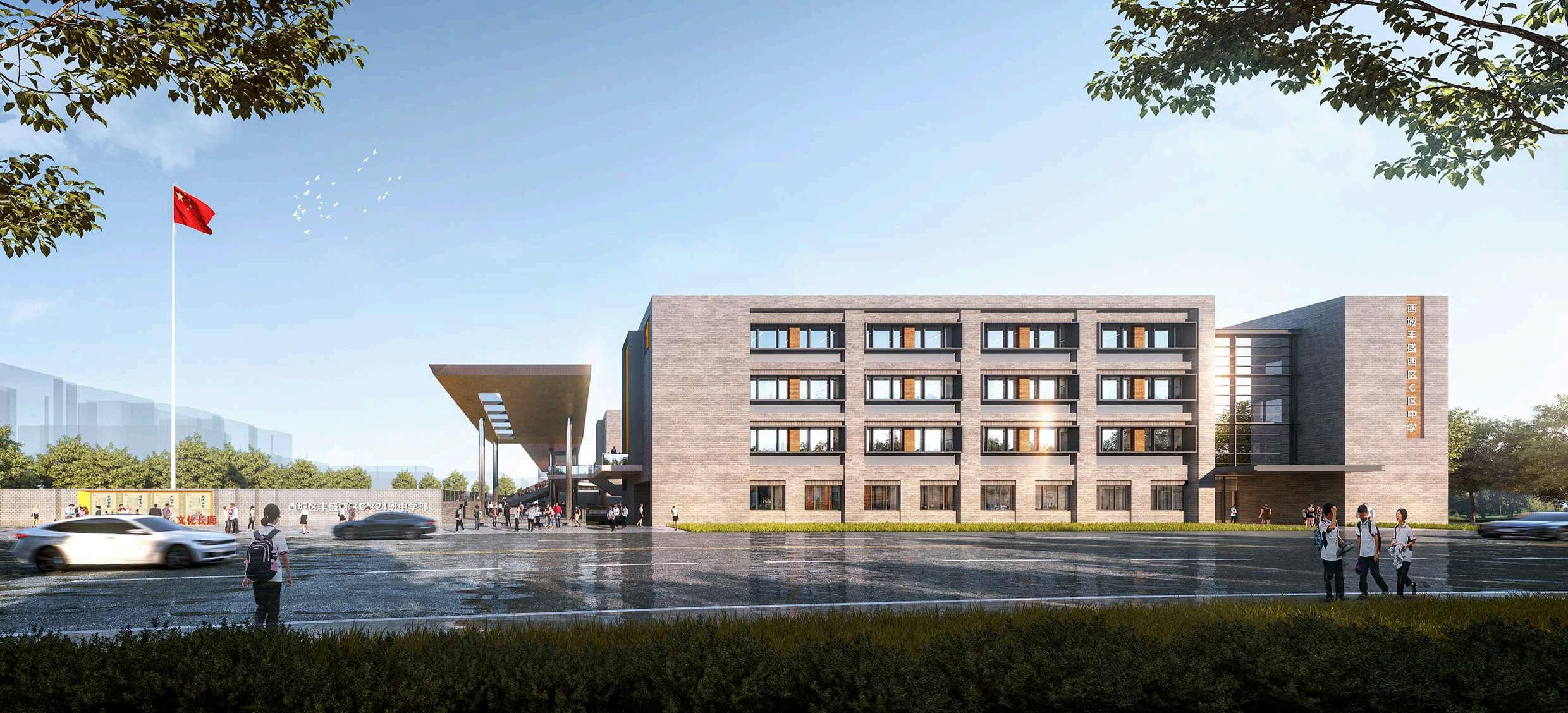Fengsheng High School, located in the heart of Beijing, seamlessly blends modern educational concepts with sustainable design. The school features a vertical layout to maximize limited urban space, enhancing connectivity and spatial flow. Drawing inspiration from Beijing’s architectural heritage, elements such as grey brick are integrated with contemporary sustainable strategies, striking a balance between tradition and modernity Sunken courtyards and rooftop greenery provide open, interactive learning spaces while optimizing natural resources for a healthier educational environment.