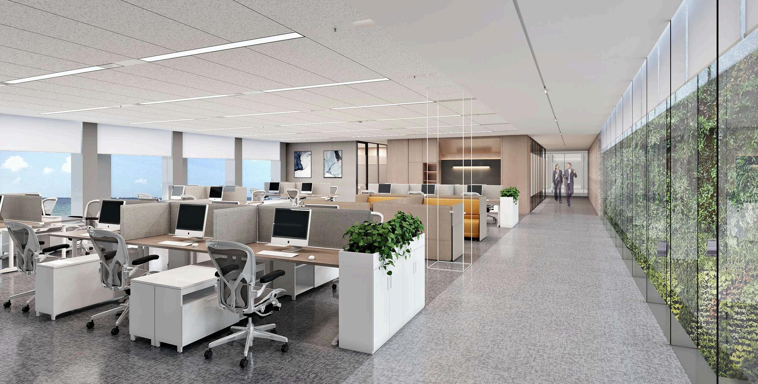 The project integrates multi-level greenery underground courtyards, ground-level gardens, interior plants, platform landscaping, and rooftop gardens to create a healthy, eco-friendly environment This system not only beautifies the space but also improves air quality, regulates humidity, and reduces harmful substances like formaldehyde and bacteria As indoor oxygen levels rise, the body benefits from a better oxygen supply, enhancing energy and productivity. The greenery offers both aesthetic enjoyment and functional benefits, contributing to a sustainable, vibrant atmosphere.