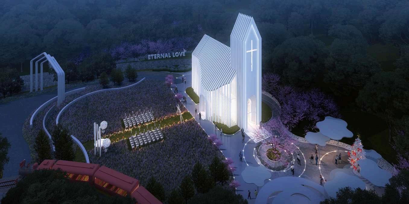 The design concept for this section blends seasonal landscapes with art, offering visitors a unique experience year-round. The primary functions focus on weddings and seasonal sightseeing The design fosters an ecofriendly, romantic atmosphere, with distinct settings for each season. To enhance the winter experience, advanced technologies such as sound, light, and projections are seamlessly incorporated