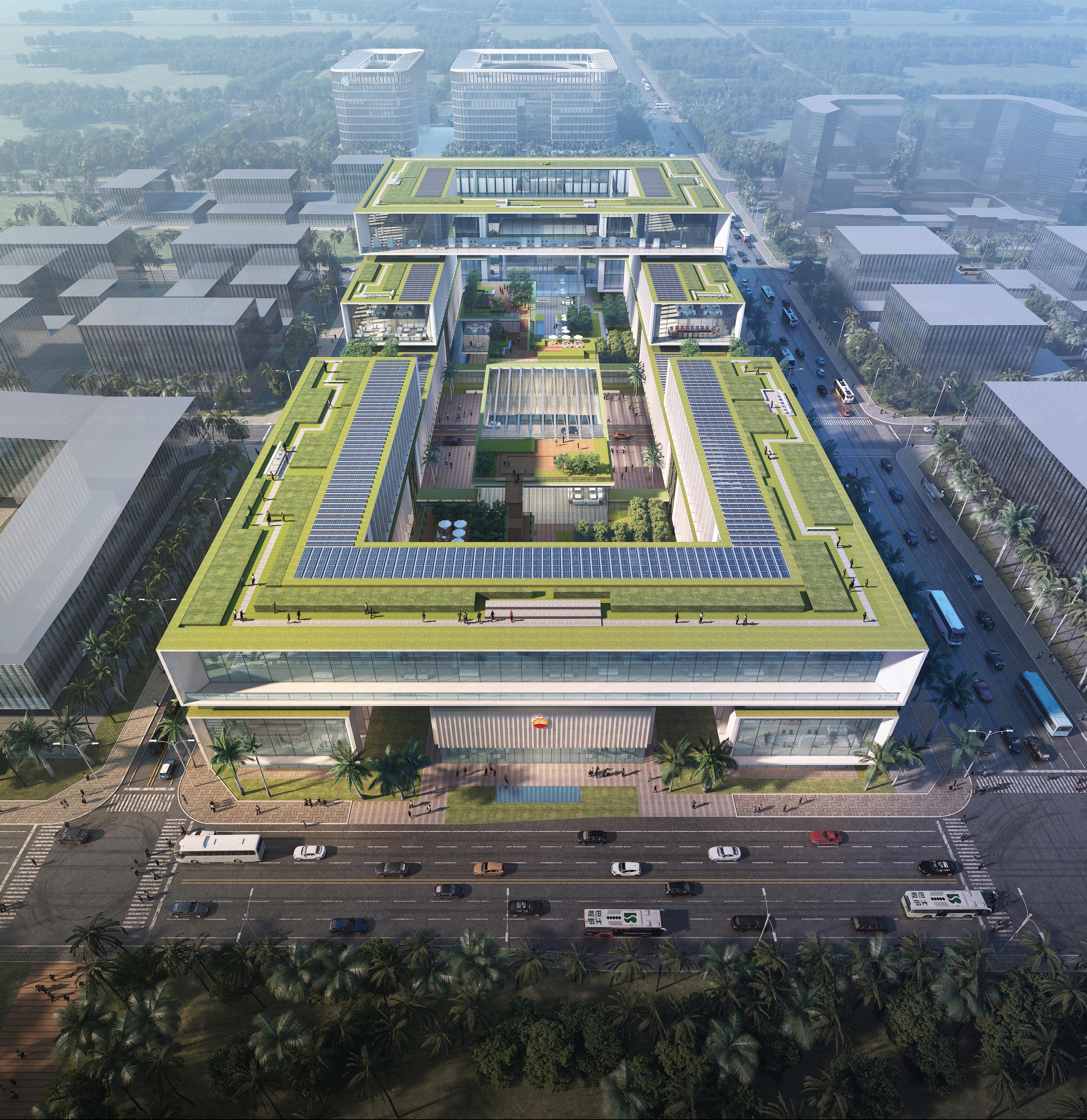 The CNPC Hainan Headquarters, located in the Jiangdong New Area of Haikou City, aligns with China’s Hainan Free Trade Port strategy and supports CNPC's regional business growth The design merges modern office spaces with advanced sustainability features, creating a landmark that embodies CNPC’s identity as a leading state-owned enterprise while emphasizing environmental responsibility