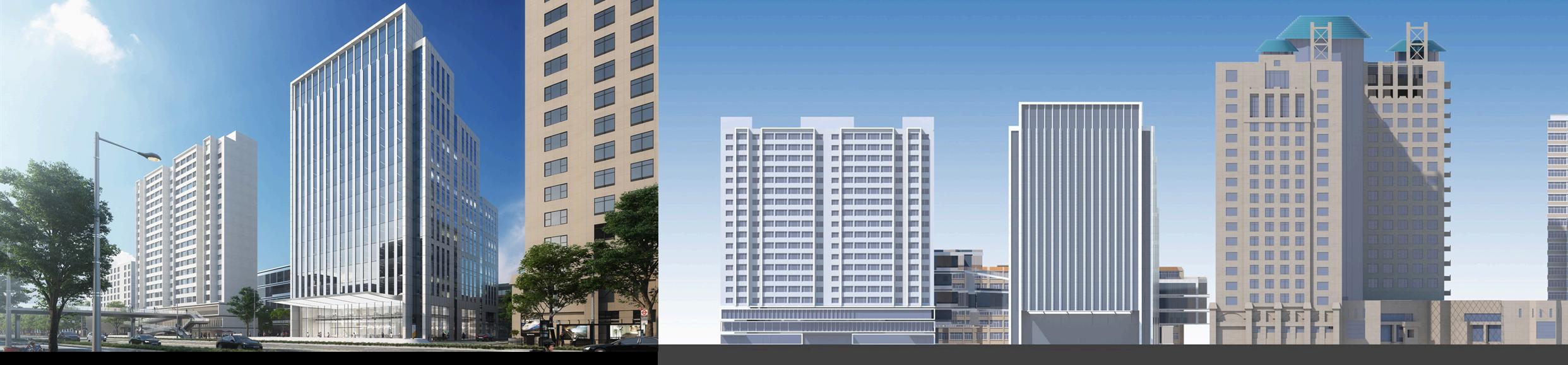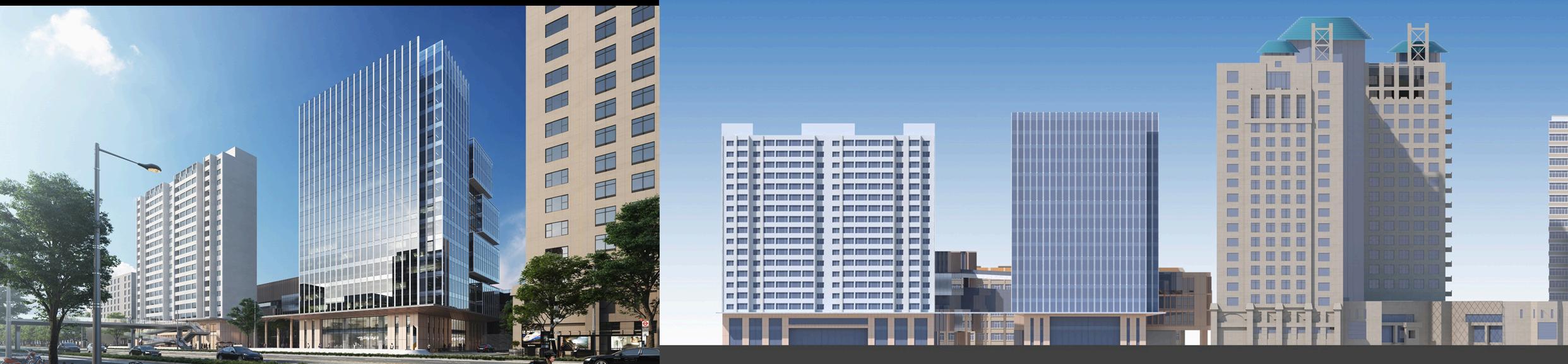 The design strategy simplifies and reclads the complex facade of the existing building, creating a modern, unified aesthetic By integrating the building and Tianheng as a single entity, we aim to enhance the urban frontage and elevate the city’s image The entrance will be highlighted between the two buildings, establishing a clear and inviting focal point Additionally, the rear commercial space will be reimagined as flexible office areas, combining functionality with visual appeal