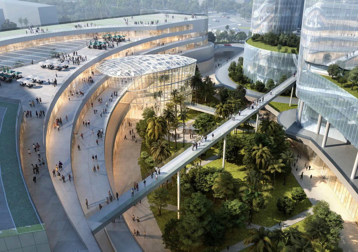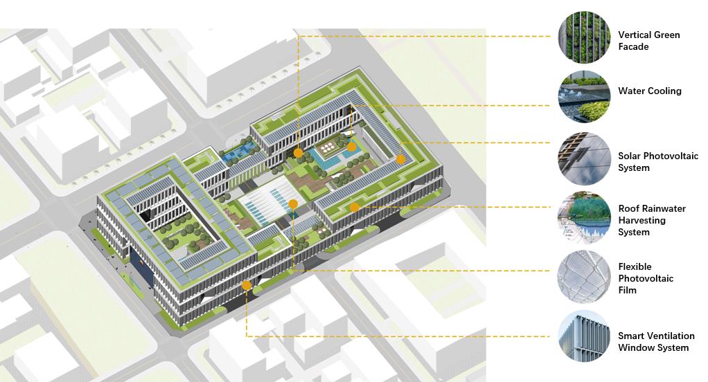 The project prioritizes a green architectural approach, integrating industrial cultural, and environmental eco By incorporating sustainable tech d considering the building's enti from construction to operation o set a new standa con n development a e rk commercial hub