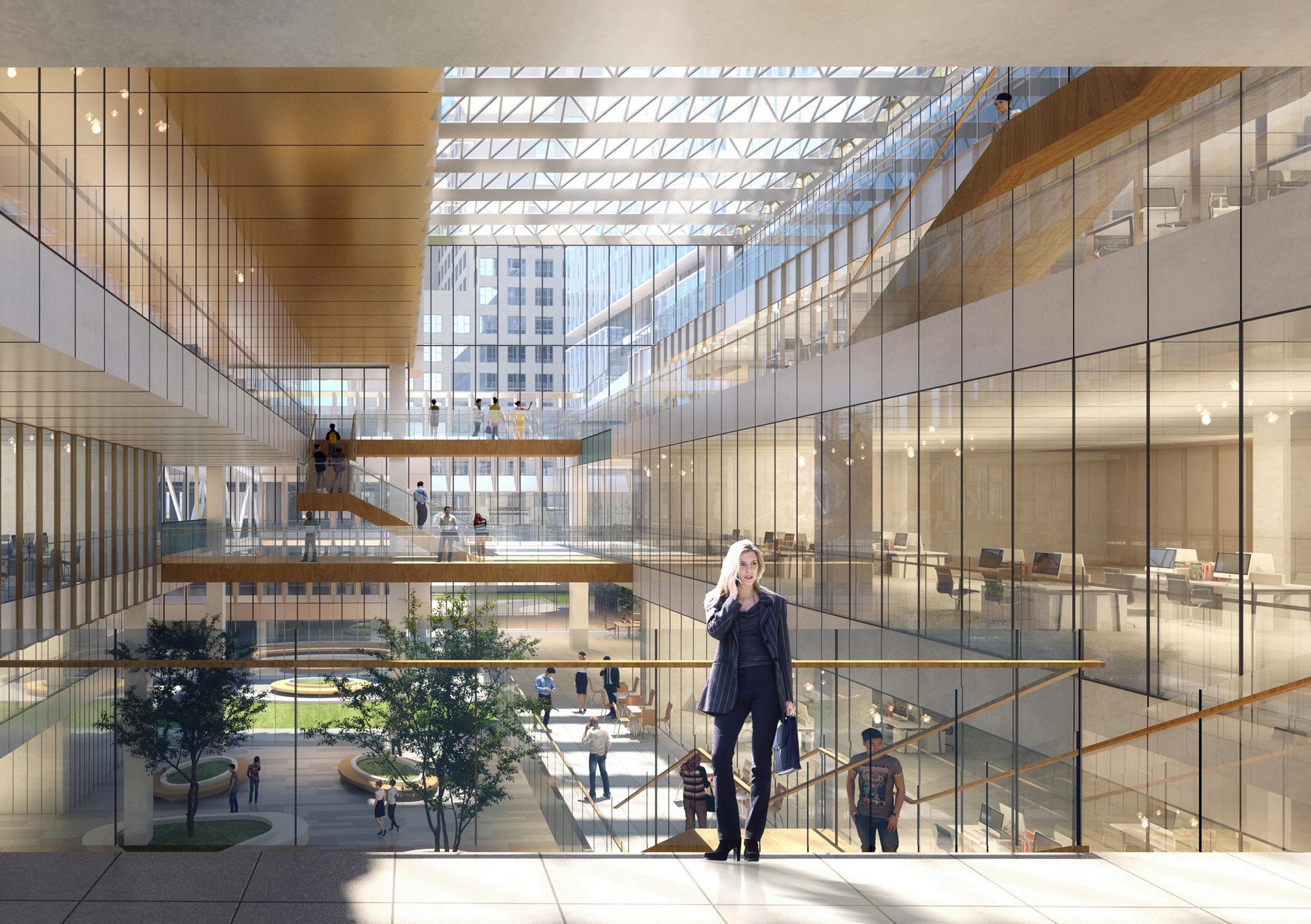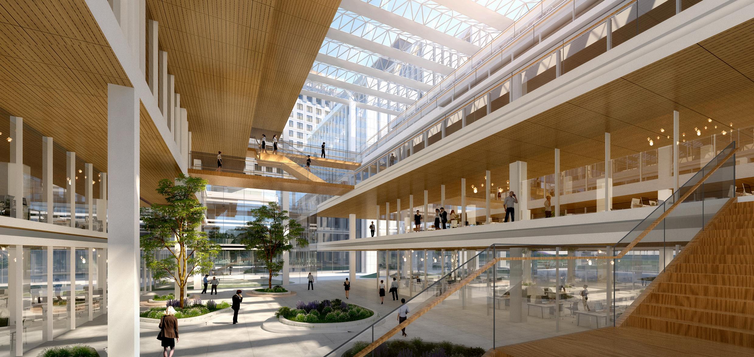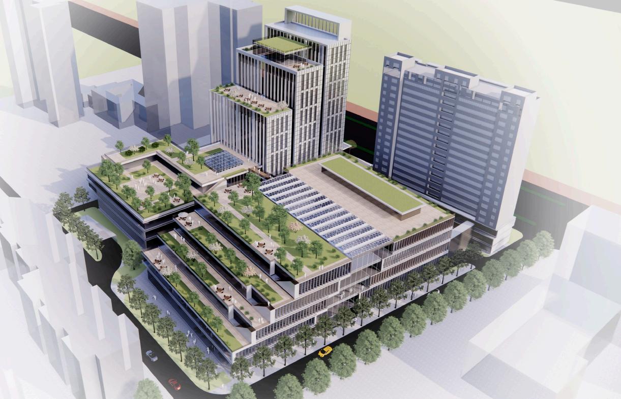 The commercial office complex consists of three towers, designed to offer maximum flexibility for tenants of varying sizes and needs.