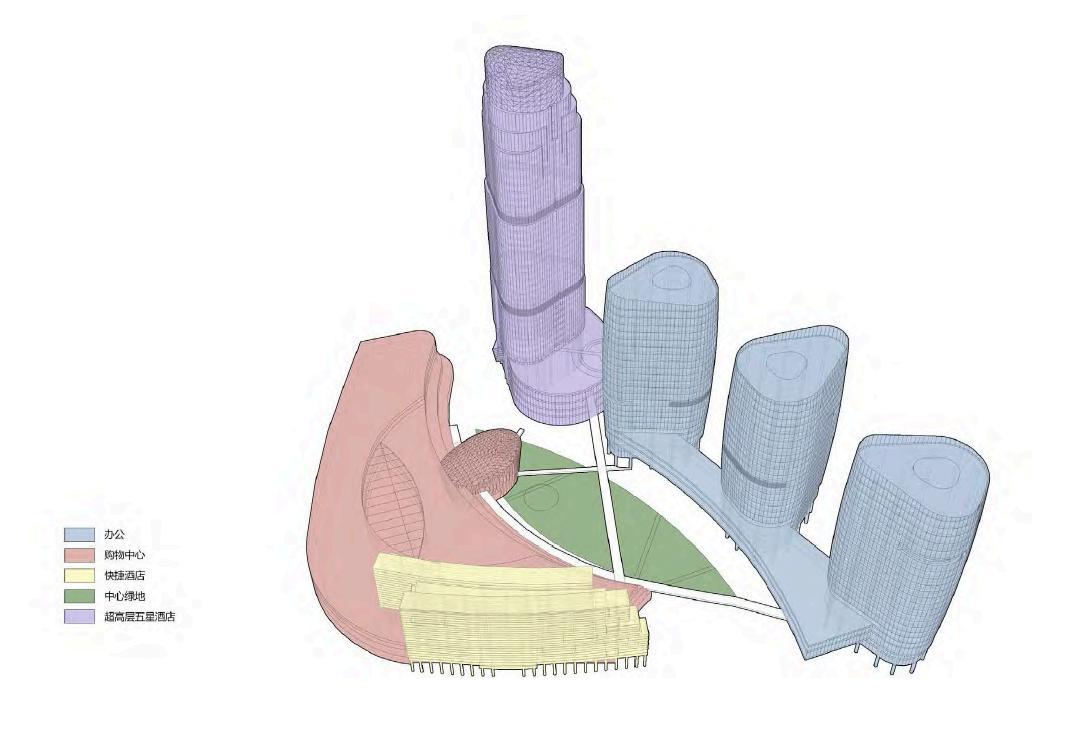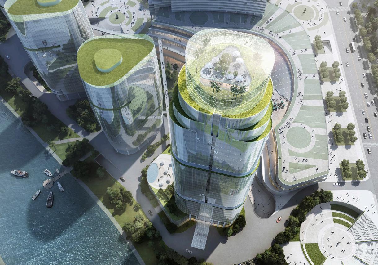 Drawing inspiration from the Taiji philosophy, the design balances "Yin" and "Yang" with office towers along the waterfront maximizing sea views, while commercial spaces create a dynamic urban hub A central green plaza serves as a vibrant gathering space, enhancing community interaction