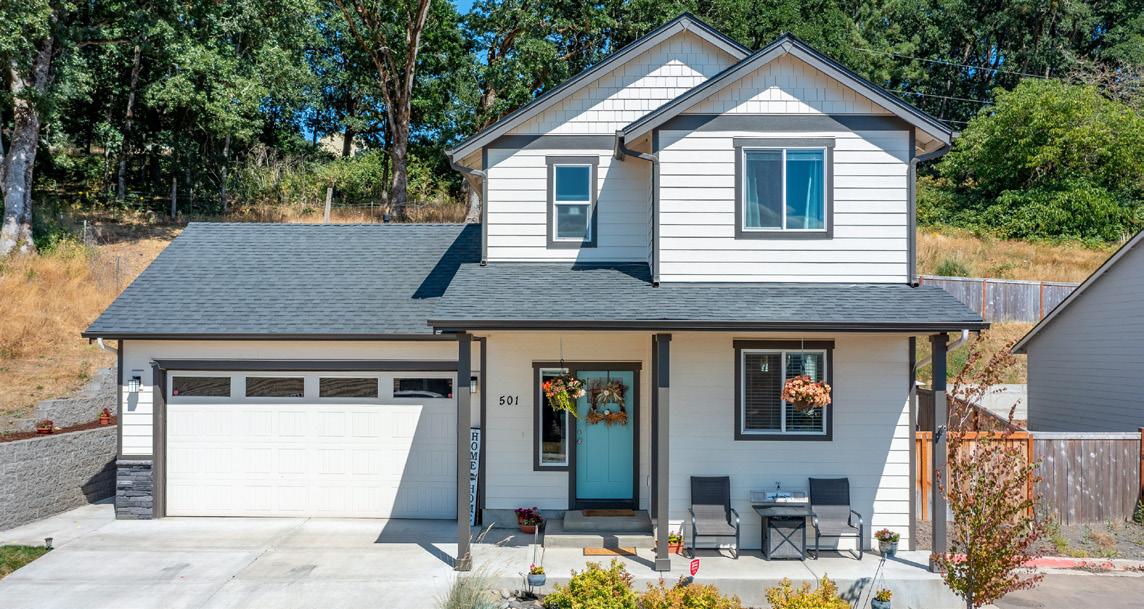 Willamina $412,500: Newer home built by West One Homes in the desirable Pacific Hills Estates. Open Concept living, granite counter tops, stainless steel appliances, 4 bed, 2.5 bath. 2 car garage Air conditioning and leaf guard gutters. spacious yard, fire pit, garden shed and raised beds. Seller went through Lep program and had Solar put in to help with PGE.