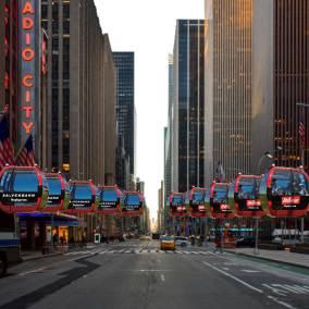 Through an elevated, electric micro cableway with simplified boarding and modular stations.