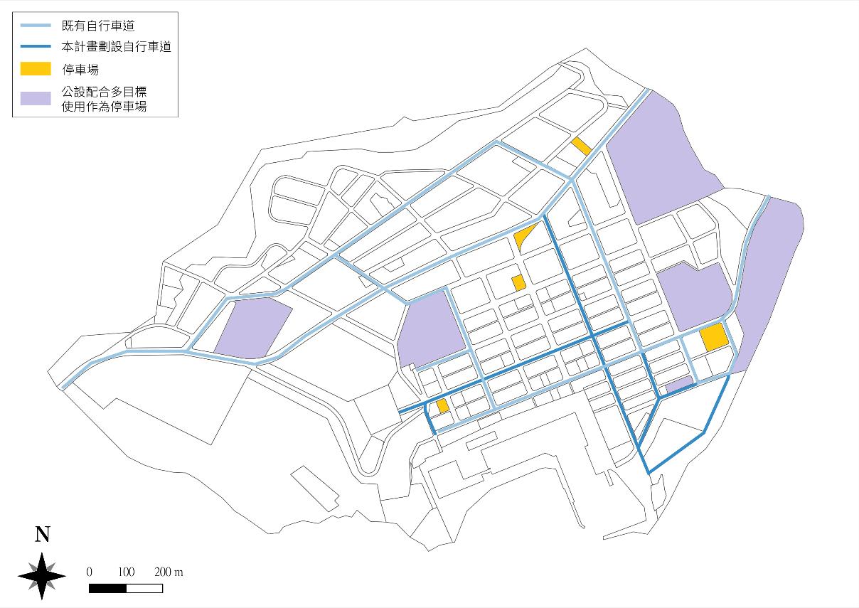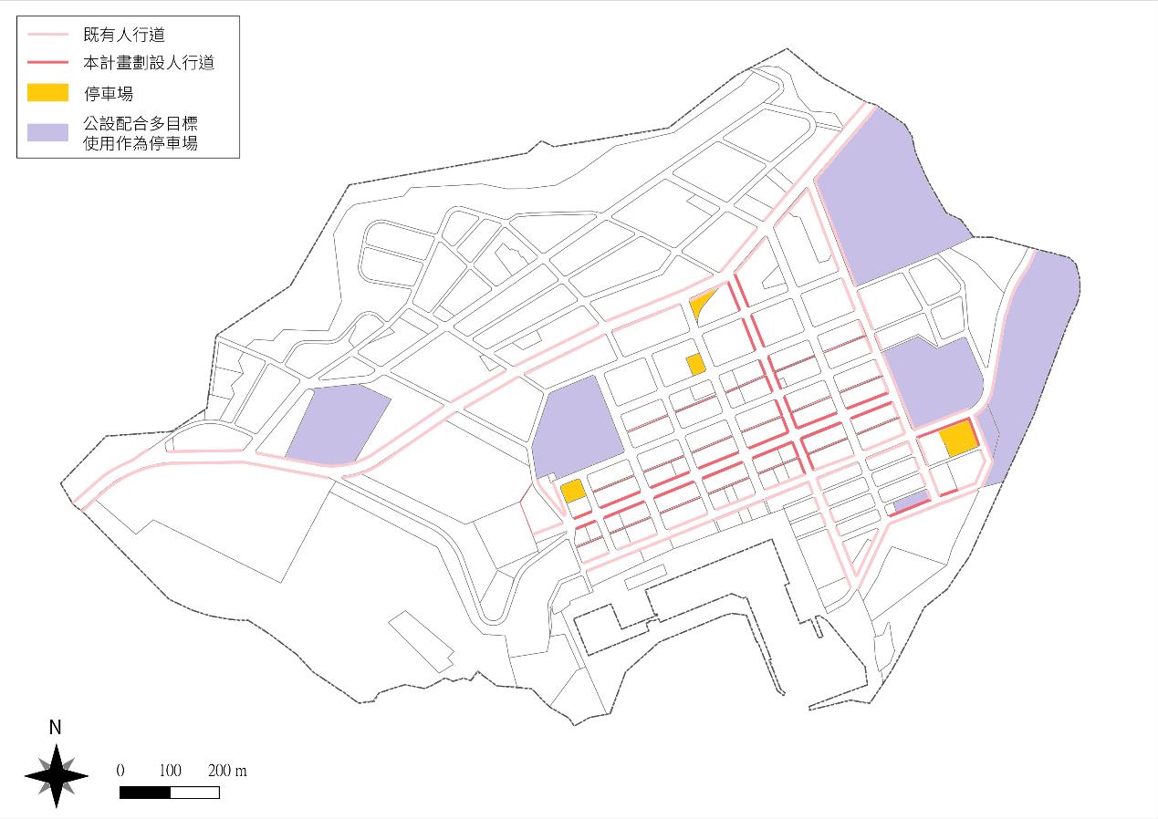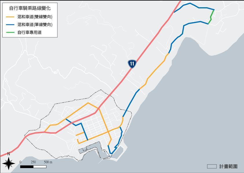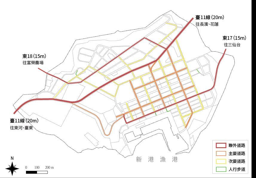 人行與自行車道動線設計應考量連續性,避免高低 落差,並且串連計畫區之聯外道路、既有人行道與 腳踏車道、商業區、聯外道路及新港漁港為原則。