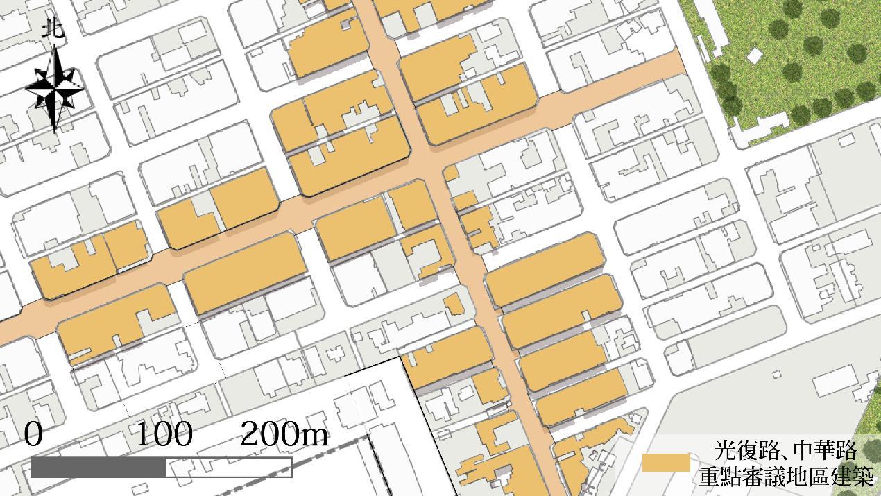 二、本重點審議地區範圍含中華路、光復路計畫道路與鄰接建築基地。
