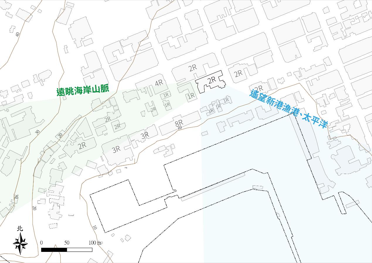 側之建築物量體應限制高度以維持自新港教會遙望西北側海岸山脈與南側太平 洋之景觀視野不被遮蔽,故以新港教會二樓平台高度為基準,除重大公共設施 其合理性與必要性經都市設計審議委員會同意指者外,重點審議地區建築高度 不應高過 8