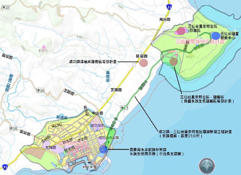 中心商業區、新港漁港觀光區域以及海濱公園,打 造成功鎮自行車觀光網路。