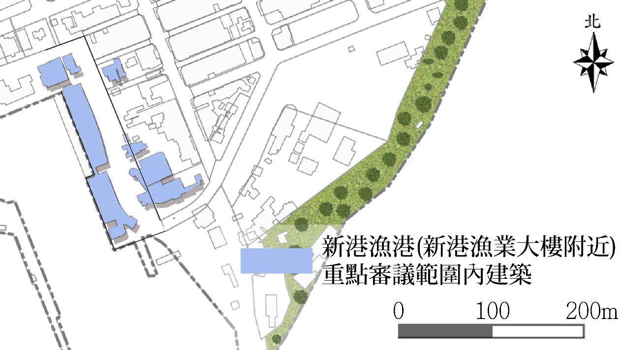 217 圖 九 25 新港教會周邊重點審議地區示意圖 資料來源:本計畫繪製 三、新港漁港地區