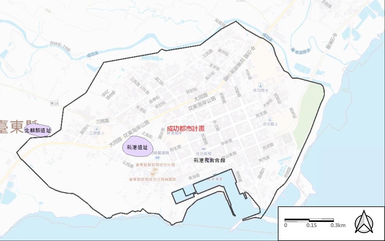 表 九 12 新港教會相關目標體系與策略說明表 空間定位|文化/風貌:塑造漁港文化風貌 空間發展目標|塑造成功漁港之海洋風情,以及傳統產業文化之傳承 營造漁 港意象 限制歷史建 築與周圍空 間發展 新港教會與周圍住宅區,以都市設計準則,規範與限 制歷史建築與其周圍空間,並配合觀光系統優化塑造 為成功鎮地標。 都市設 計準則 資料來源:本計畫彙整 2. 管制範圍 主要管制項目為區內建築物量體、高度、型態、風格、色彩以及新港教會 紋理延續性範圍,新港教會西側、南側須維持視覺景觀通透性之區域主要以街 廓範圍之界線,東側及北側管制臨新港教會側之立面,則以道路境界線或指定 建築線為參考界線,如下圖: