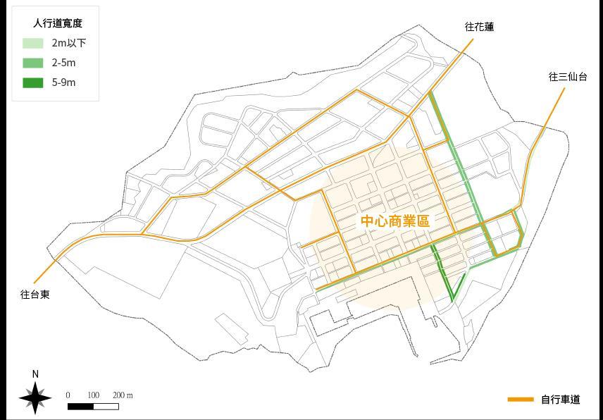 200 表 九 8 中心商業區關目標體系與策略說明表 標的 策略 策略說明 檢討變更 內容 空間定位|觀光/機能:東海岸觀光機能核心 空間發展目標|結合觀光產業、機能環境並塑造漁港特色風貌 重構 交通 系統 規劃人行系統 光復路、中華路兩側路型重新設計,透過道 路與建築退縮留設無遮簷人行道,保障行人 安全。 交通系統 計畫、土 地使用管 制要點 營造 觀光 場域 打造觀光區漁港風 貌 藉由鋪面、樓高限制及色彩設計與立面等規 範,使港埠區、中心商業區與海濱公園為一 體性之風貌。 交通系統 計畫、都 市設計準 則 空間定位|文化/風貌:塑造漁港文化風貌