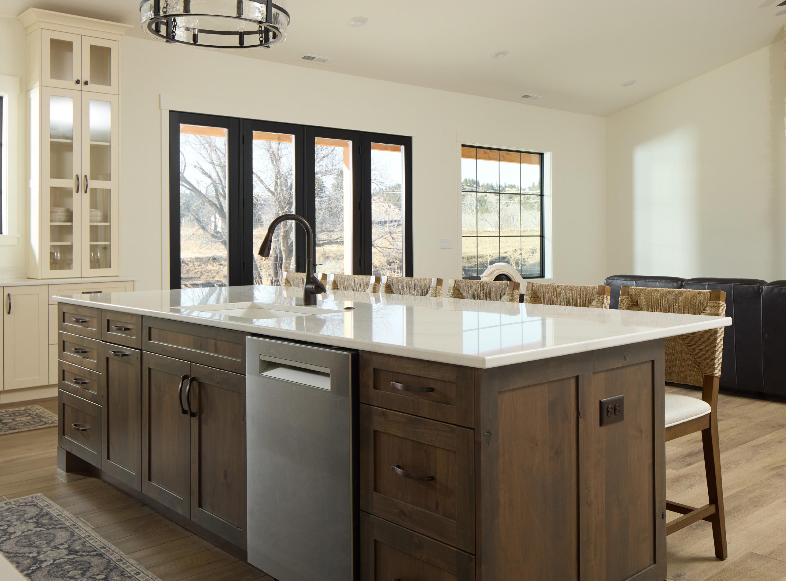 The southern view from the open-design living area spotlights the mountains, but inside this home, it’s the kitchen that knocks your socks off.