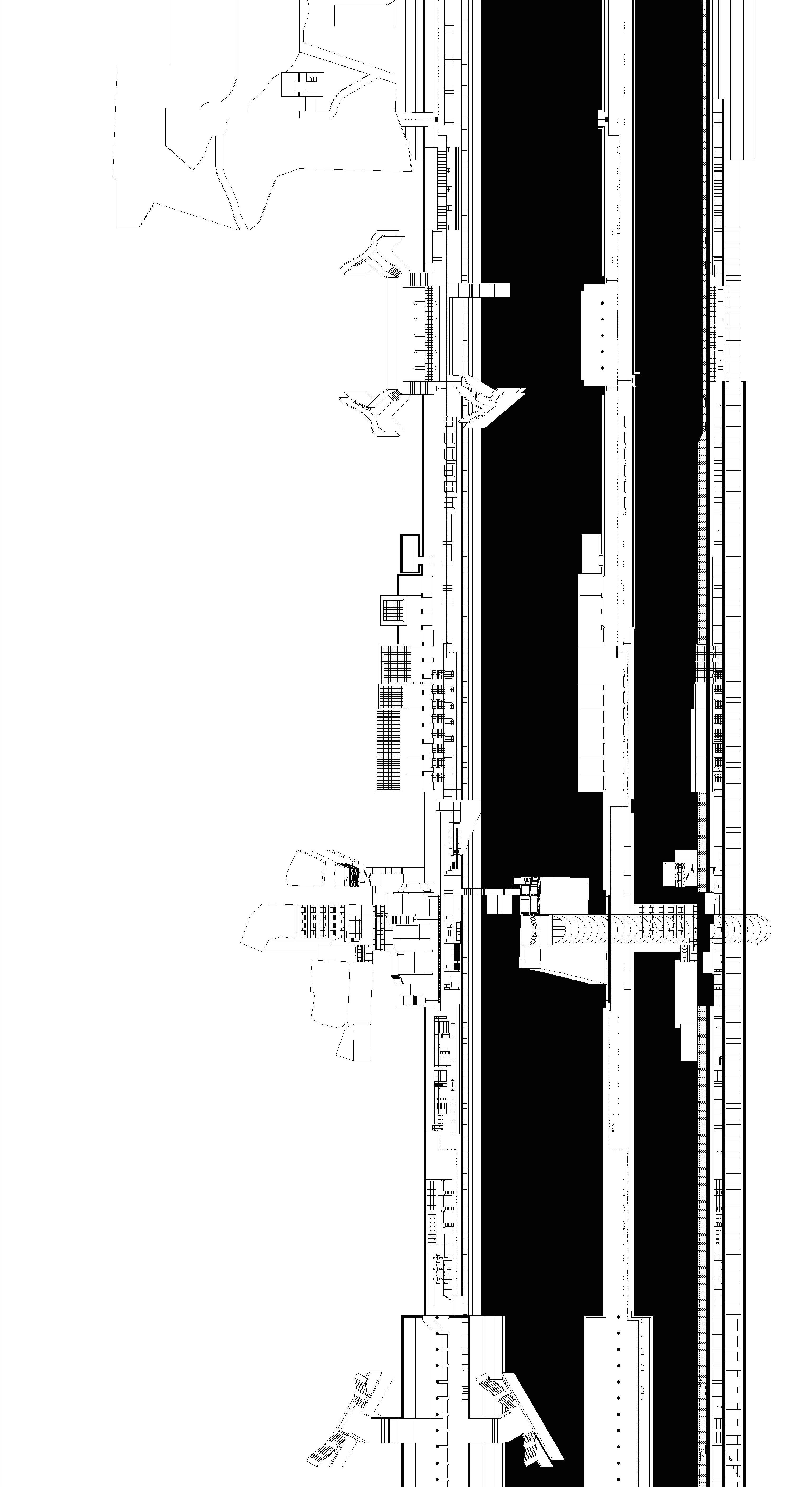 Threshold Space 1_Vertical Archive Service facilities connect to everyday ventilation shafts and function as rigid storage spaces extending to ground level