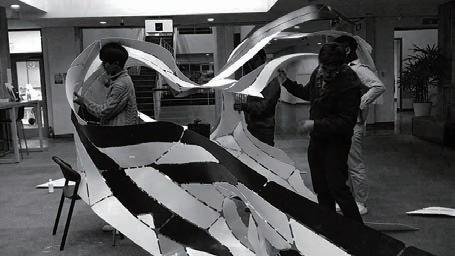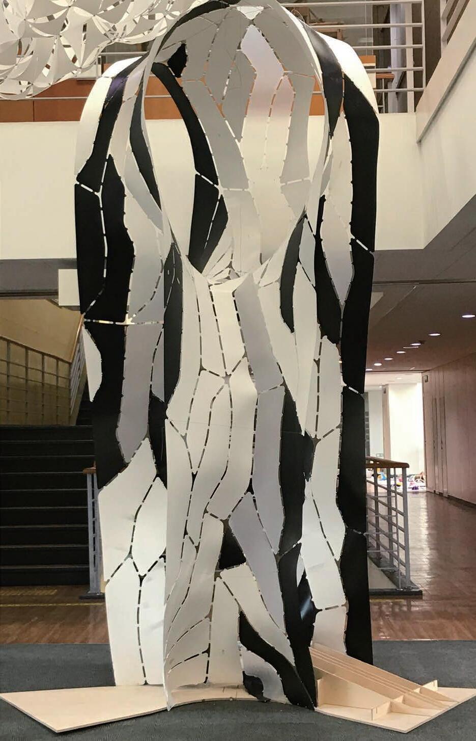 The project investigates synthetic morphologies that incoporate the effect of external forces on intrinsic material behavior through computation design tool. By Finding forms with computational algorithm, the membrane were fabricated as structural compoenents. The pattern is an example of a project that utilizes soft bending materials as architectural building modules to produce a novel complex form that can be physically fabricated with minimal manual involvement and high efficiency at both the form-finding level and the physical making level.