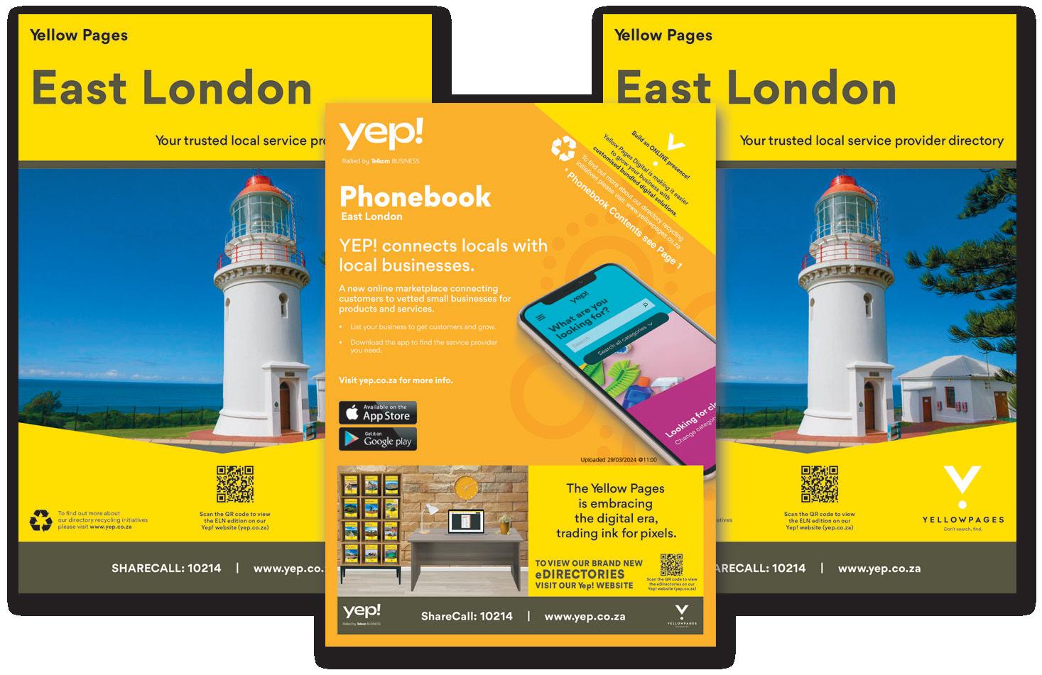 Yellow Pages are available for free, on our Yep! eBook domain www.whitepages.co.za