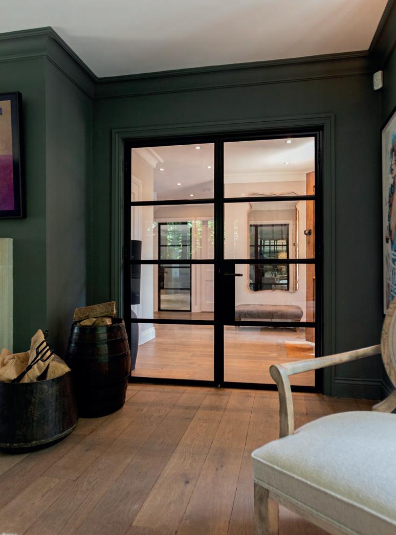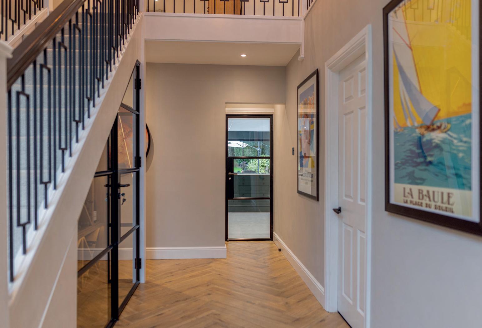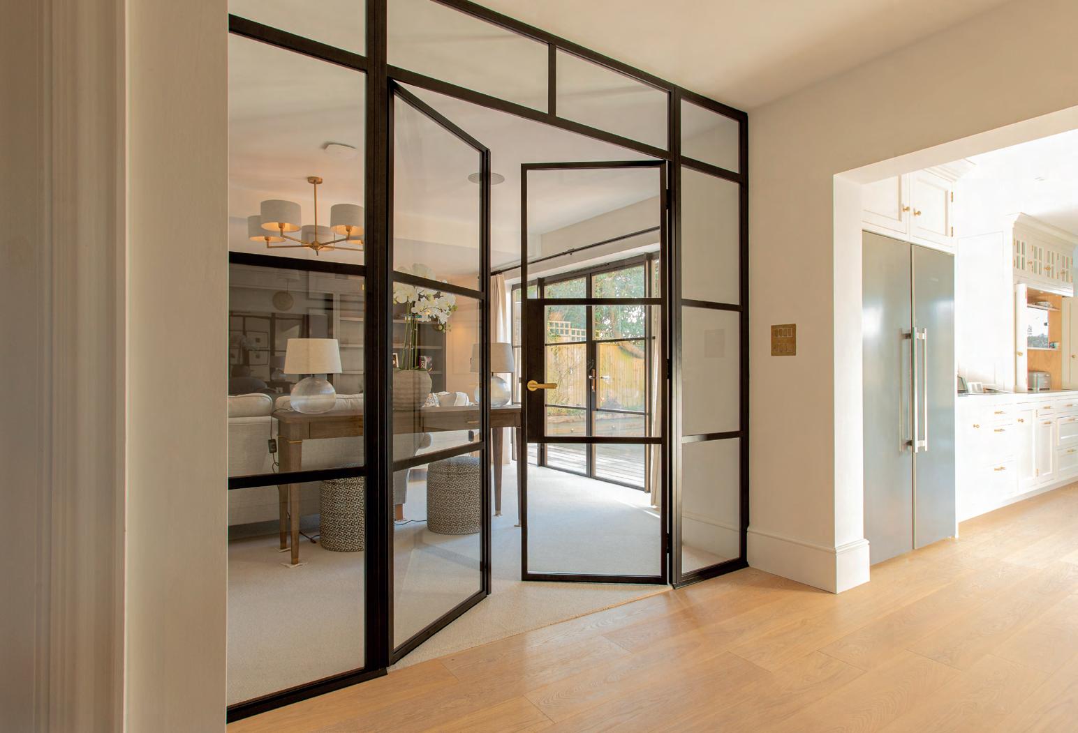 This stunning residence in Oxted features our iconic YES Steel Look internal single doors, complemented by the sophisticated touch of our Sevenoaks handle in a satin brass finish.