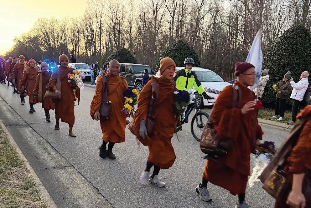 A Walk for Peace that began in Texas Oct. 26, 2025, and is expected to end in Washington, D.C. sometime in mid-February has captured the attention of Americans nationwide. A group of 19 monks from Theravada Buddhist monasteries across the globe and America started the journey from a Vietnamese Buddhist temple in Fort Worth. Once they get to Washington, they plan to ask Congress to recognize Buddha’s day of birth and enlightenment as a federal holiday. Along the way, the monks have held unofficial meet-andgreet sessions at lunchtime and at the end of the day. Their goal is to encourage people to practice mindfulness and find peace within themselves, according to the group’s leader the Venerable Bhikkhu Pannakara. He teaches this, along with forgiveness and healing, at each stop they make.