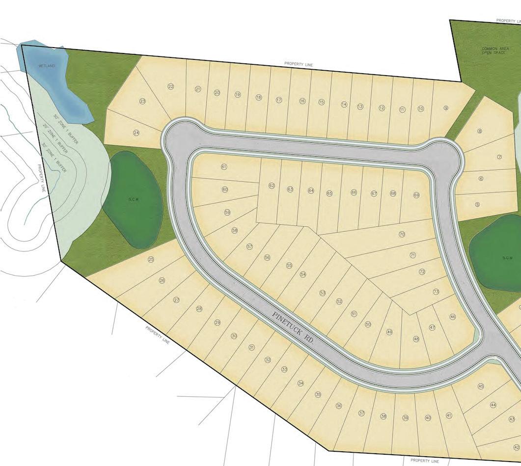 Zoning-Single Family Residential (CS-SFR) to construct 73 detached homes, the maximum allowed by Jamestown. That equates to approximately 4.1 homes per acre, with a minimum of 10 feet between buildings.