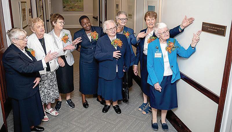 new signage for the Poor servants of the Mother of God Heritage Room was unveiled. the name symbolizes the retirement center’s commitment to preserving the legacy of the sisters who have served at Pennybyrn.