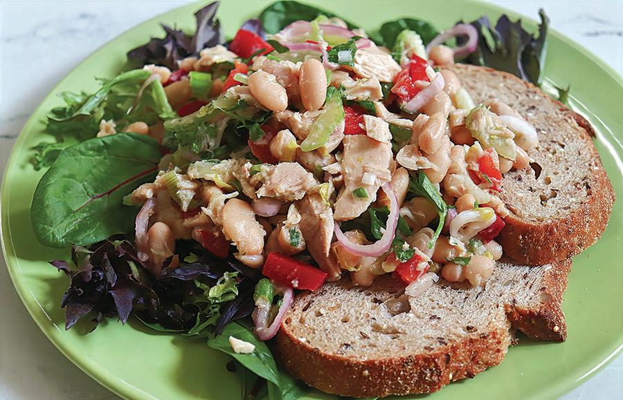 white beans provide fiber and a creamy texture that balances the tuna perfectly. We use a simple, olive oilbased vinaigrette, which not only adds a burst of flavor, but also comes with its own set of health perks, like promoting healthy cholesterol levels.
