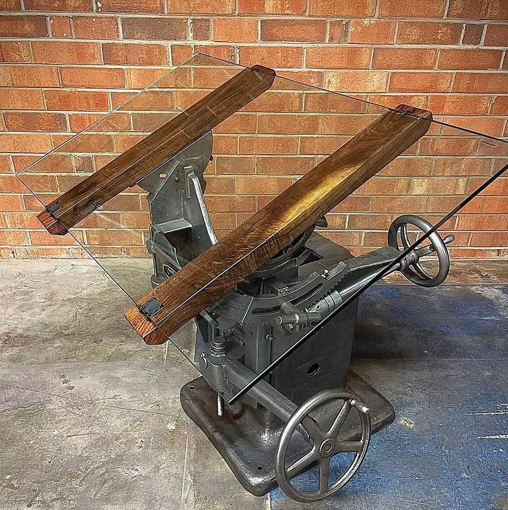 “While anyone can walk into a higher-end furniture store and purchase a replica crank table or desk, my creations are for the person who wants authenticity. They want to know it’s an American made unit that was likely originally cast over 100 years ago — several were done so nearby in Greensboro. They want to know the story behind it, where it was found, where it came from, what it took to bring it back to life. They want to see the scars and weathering of decades and imagine the generations of factory workers working beside it day in and day out. As one customer in Texas referenced a table with several deep cuts and pitting in the iron: ‘the more character, the better.’”