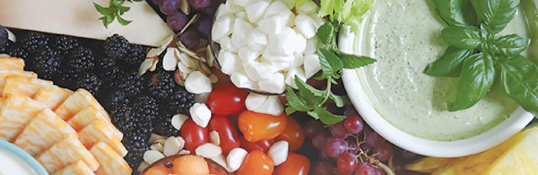 Summer is the perfect time to simplify meals while still offering something memorable. This Caprese-inspired charcuterie board is an easy, fresh and visually stunning way to entertain or enjoy a light lunch or supper on a hot day. Featuring seasonal ingredients like ripe tomatoes, fresh basil and juicy stone fruit and berries, this board also comes with two homemade dips that elevate the experience in a snap.