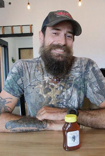 Photo by norma b. Dennis Beekeeper stoney Berry sells honey from his bees at kindred Coffee in Jamestown and at the sandy ridge farmers’ market.