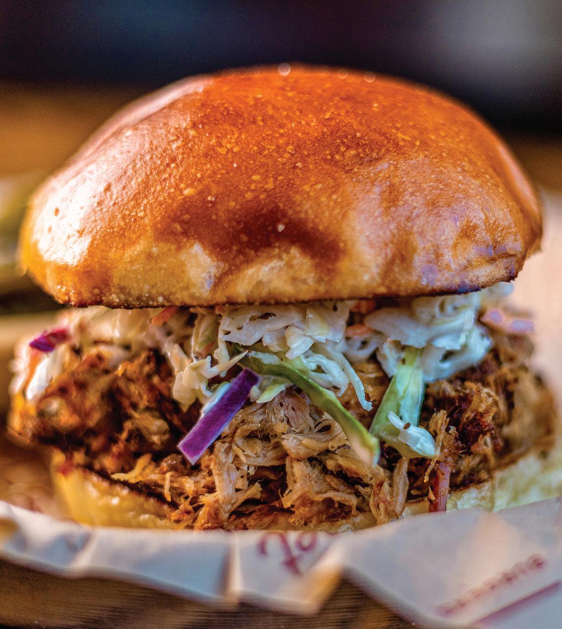 At Rooster’s (roosterskitchen.com/winstonsalem, 380 Knollwood Street, 27103, 336-777-8477), the aroma from the wood-fired grill is enticing. Lots of wood creates an elegant look, while avoiding formality or stu ness. Noble’s restaurants are justifiably famous for Tomato Basil Bisque. Oysters are especially well prepared here. Among the entrees, the Filet Mignon is as good a steak as I have ever had. Rotisserie Roast Chicken is simply the best roast chicken I’ve ever had, no reservations. The menu changes often enough to preclude other recommendations. I just look forward to returning here.