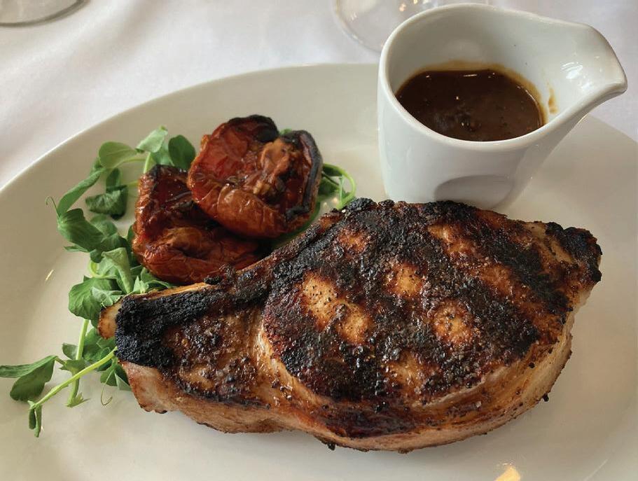 At Meridian (meridianws.com, 411 South Marshall Street, 336-722-8889), panoramic windows look into a section of Old Salem. Tables are placed far enough apart to allow conversation. The cuisine “is inspired by the bright flavors of the Northern Mediterranean, as well as local, organic, and seasonal ingredients. Everything is made in-house, from breads and hand-rolled pasta to house-made sausages and mozzarella” [website]. If you are a fan of French Onion Soup, this is your place. Steamed Mussels rest in a chardonnay cream broth that also hosts garlic, shallots, and fresh herbs, flanked by grilled bruschetta. Calamari is sauteed, plated over spicy crushed tomatoes, enhanced with Genoese basil strips, laced with lemon pepper aioli. Steaks and Duck are from Joyce Farms, one of the area’s best suppliers. Seafoods o erings depend on what is fresh that day. All recommended. I’m going to make a special visit just to have the