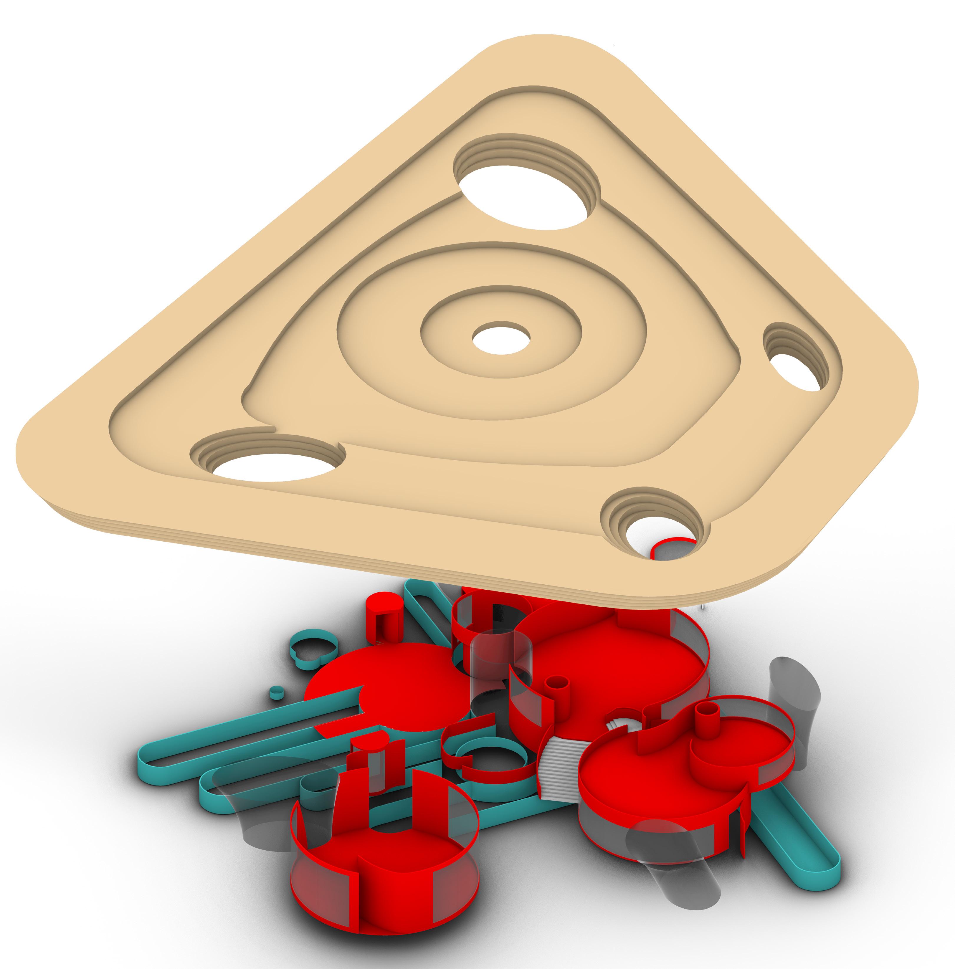 The design develops through translating motion into architecture. Using footage from Into the Spider-Verse, moments of movement were tracked and abstracted into geometric traces, then extruded and iteratively assembled into a spatial system. Influenced by the film’s glitch sequences, the final form consolidates layered motion into a faceted geometry that reads as a frozen moment of temporal distortion.