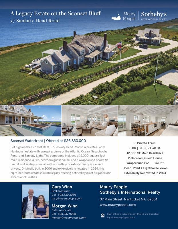 Sheila@maurypeople.com 508.228.1881 ext. 129 cell: 508.560.0488 37 Main Street, Nantucket, MA 02554 maurypeople.com